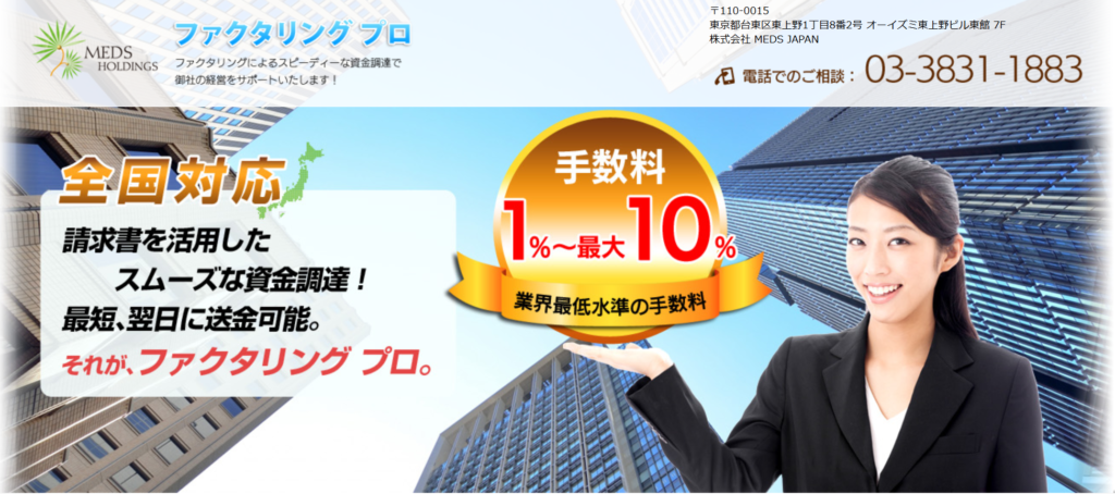 ファクタリングプロは、手数料・入金スピード・対応金額のバランスが取れた、汎用型のファクタリングサービスです。