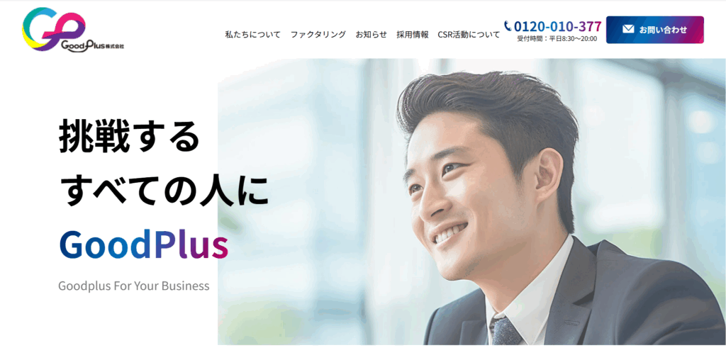GoodPlus株式会社は、法人・個人事業主向けに柔軟なファクタリングサービスを提供。非公開の買取上限ながら、幅広いニーズに対応しています。